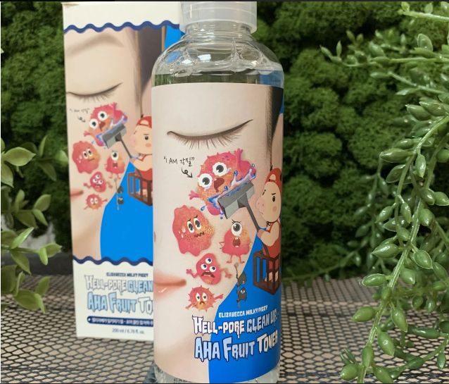 Elizavecca - Hell Pore Clean Up AHA Fruit Toner - отшелушивающий тоник, который поможет вам справиться с проблемными черными точками. На основе молочной кислоты , обладающей мягким осветляющим и увлажняющим действием, а также гликолевой кислоты , отшелушивающей эпидермис и регулирующей секрецию кожного сала. Продукт сочетается с экстрактами, которые усиливают эти свойства, такими как экстракт звездчатого аниса, проявляющий сильные антибактериальные свойства.
