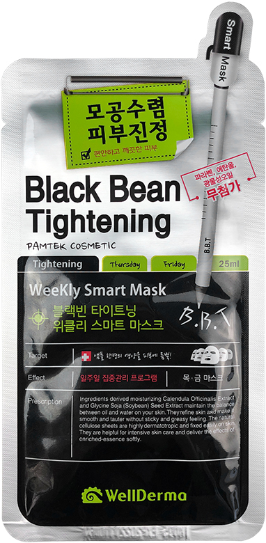 Тканевая маска для лица (сужение пор) Wellderma Black Bean Tightening Weekly Smart Mask, 25 мл